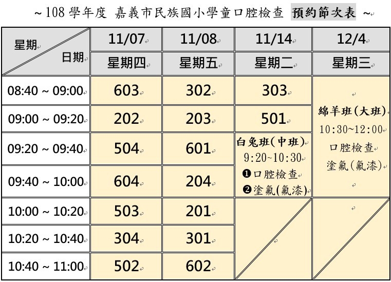 5.因上述檢查安排為配合校牙醫看診時間,造成老師們不便~敬請體諒!