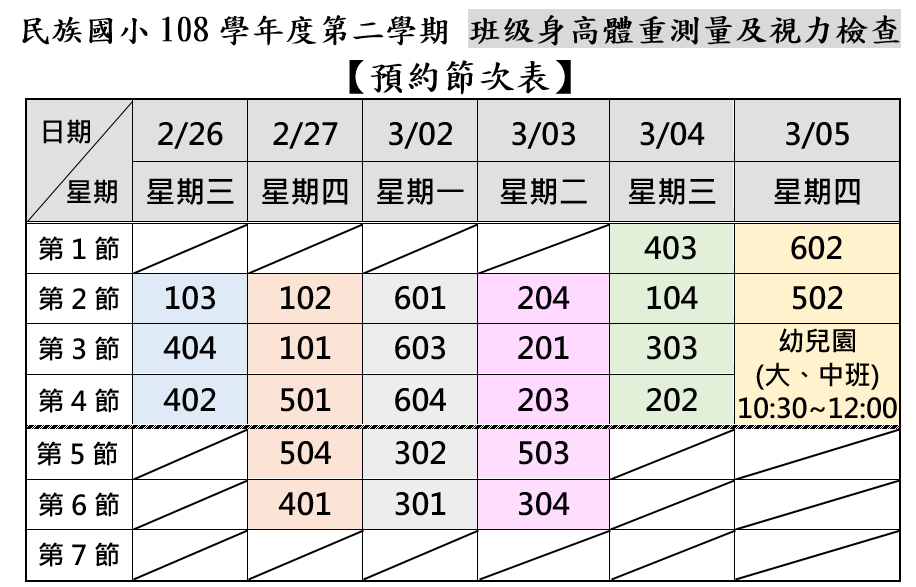 1.該班測量前請先在教室執行正確洗手20秒.戴上口罩.再至健康中心走廊集合