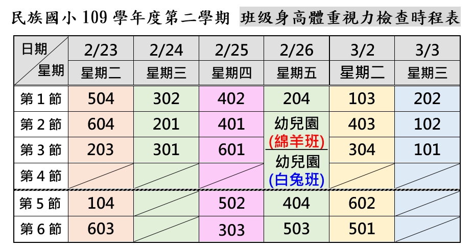 2.全班檢查完畢後請整隊安靜回教室,避免影響其他班級上課。