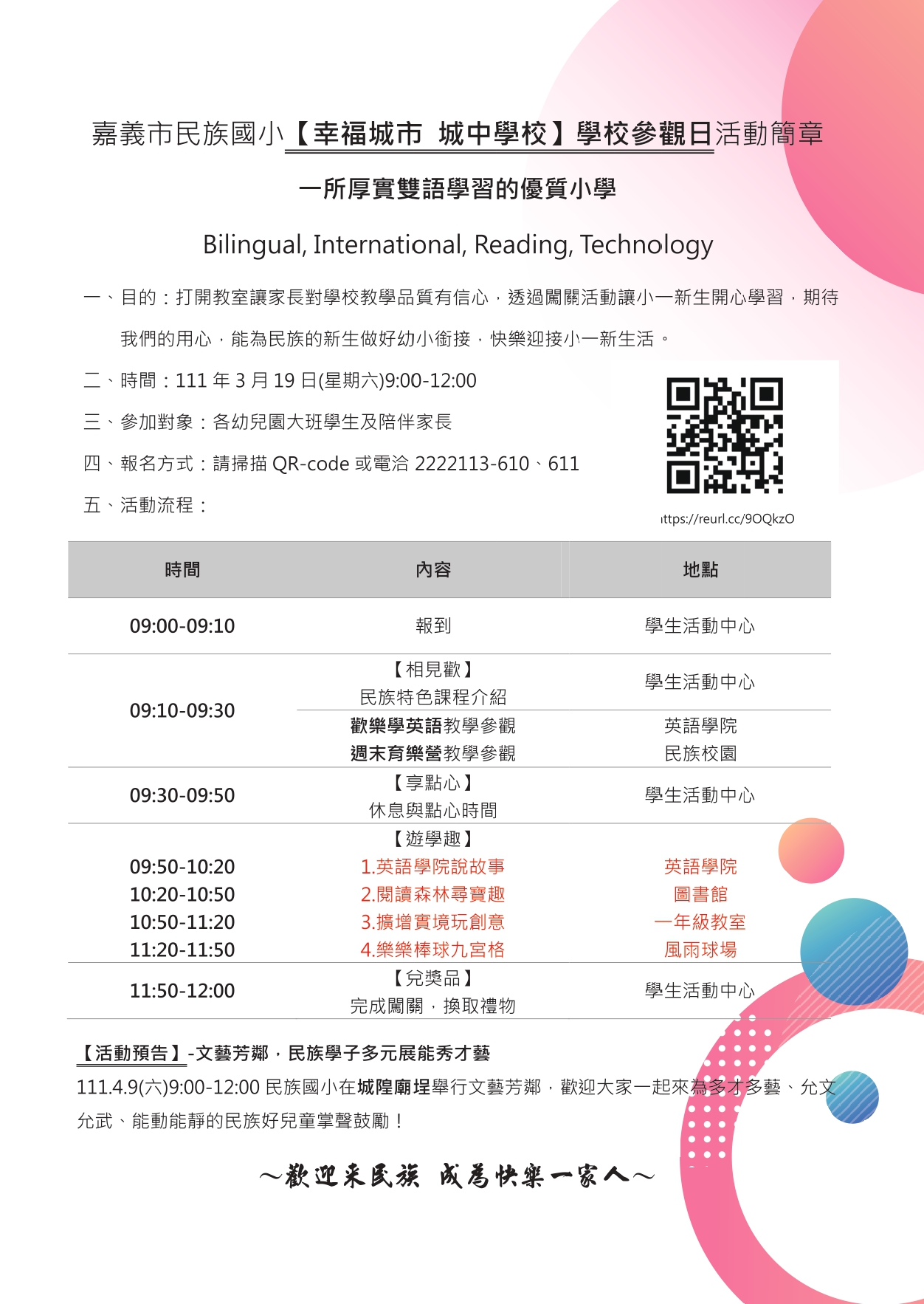 歡迎 您和寶貝們 一起來學校玩喔!