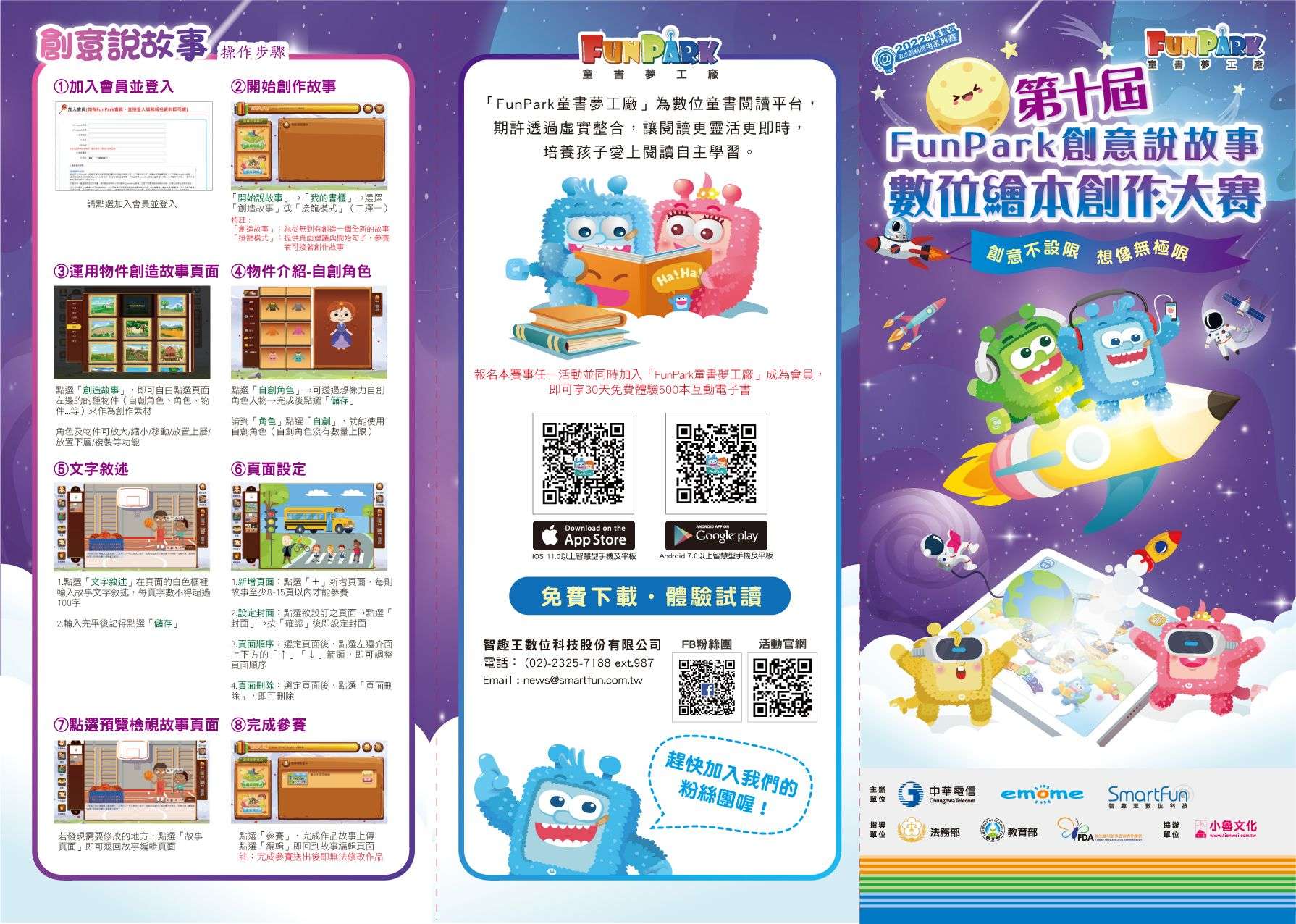 一、教育部與中華電信智趣王數位科技股份有限公司合作辦理,由廠商建置線上創作平臺提供繪本素材,鼓勵國小學童發揮想像力並展現口語表達能力,完成獨一無二的原創故事數位繪本。