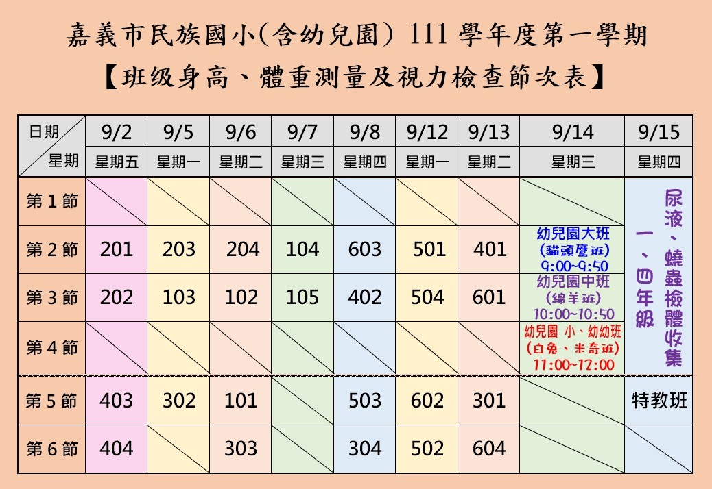 111學年度第一學期-班级(含幼兒園)身高體重測量及視力檢查