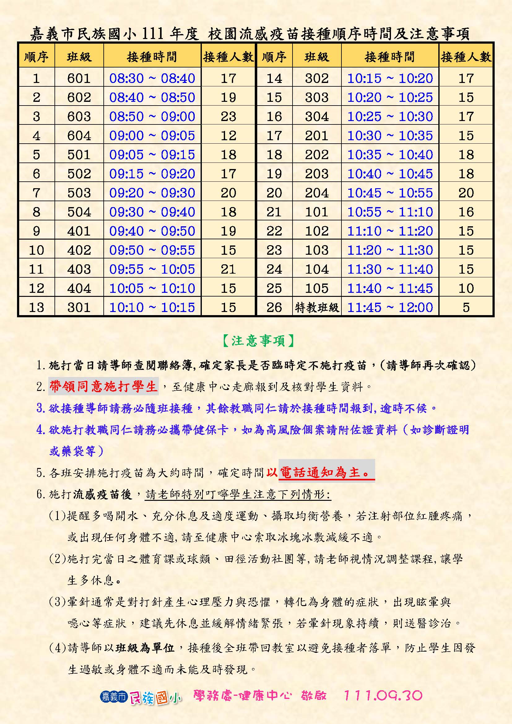 單,家長再持本通知單於本校接種日(10月5日)以後至醫療院所(含衛生所)施打即可。
