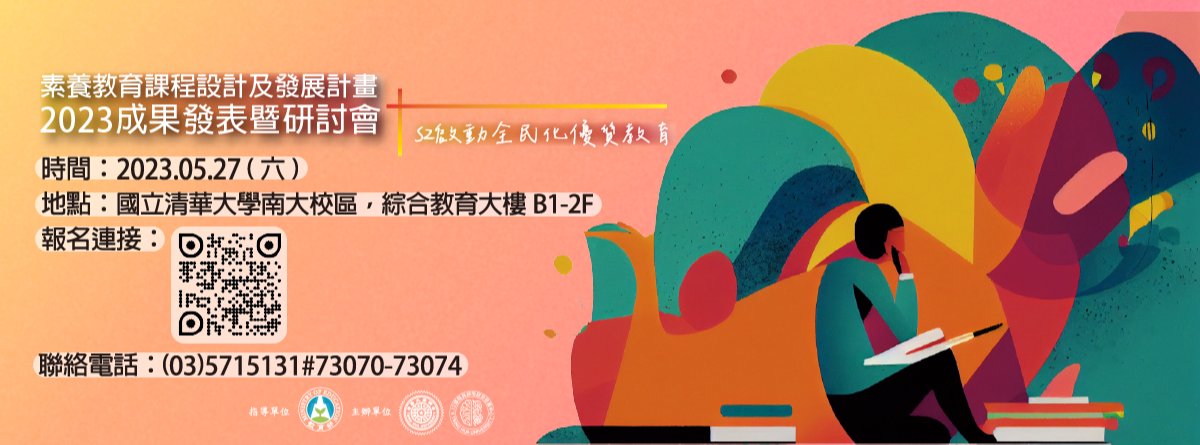 主旨:函轉教育部委託國立清華大學執行「素養教育課程設計及發展計畫」,訂於112年5月27日(星期六)辦理「2023成果發表暨研討會」,鼓勵教師踴躍參加。