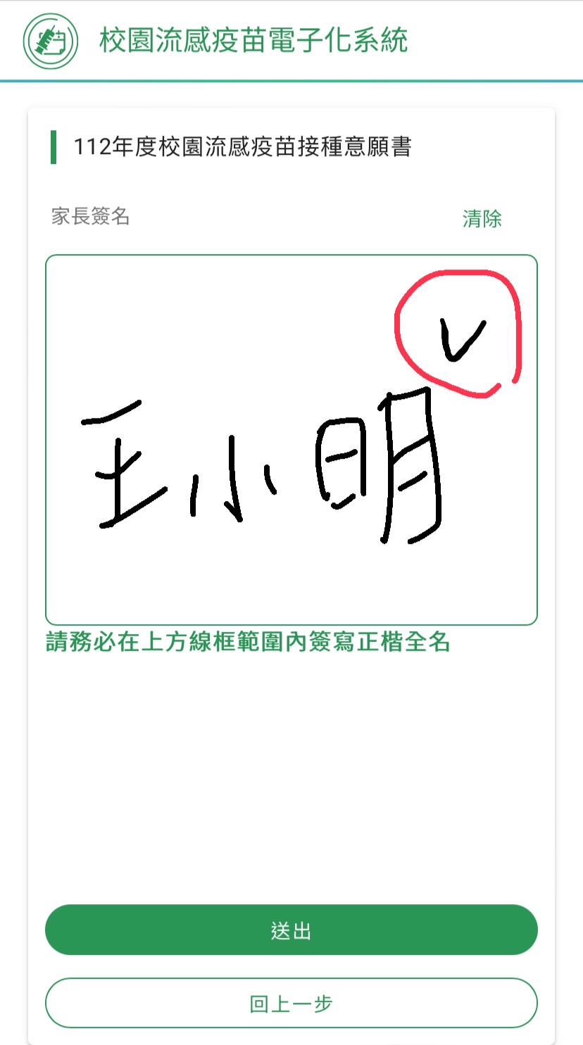 1.請點連網址(請點我)並閱讀疫苗須知後再次簽署流感疫苗接種意願書。