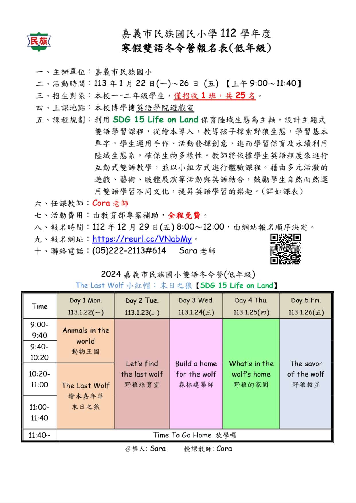 一、活動時間:113/1/22(一)~113/1/26 (五) 9:00 A.M. ~ 11:40 A.M.