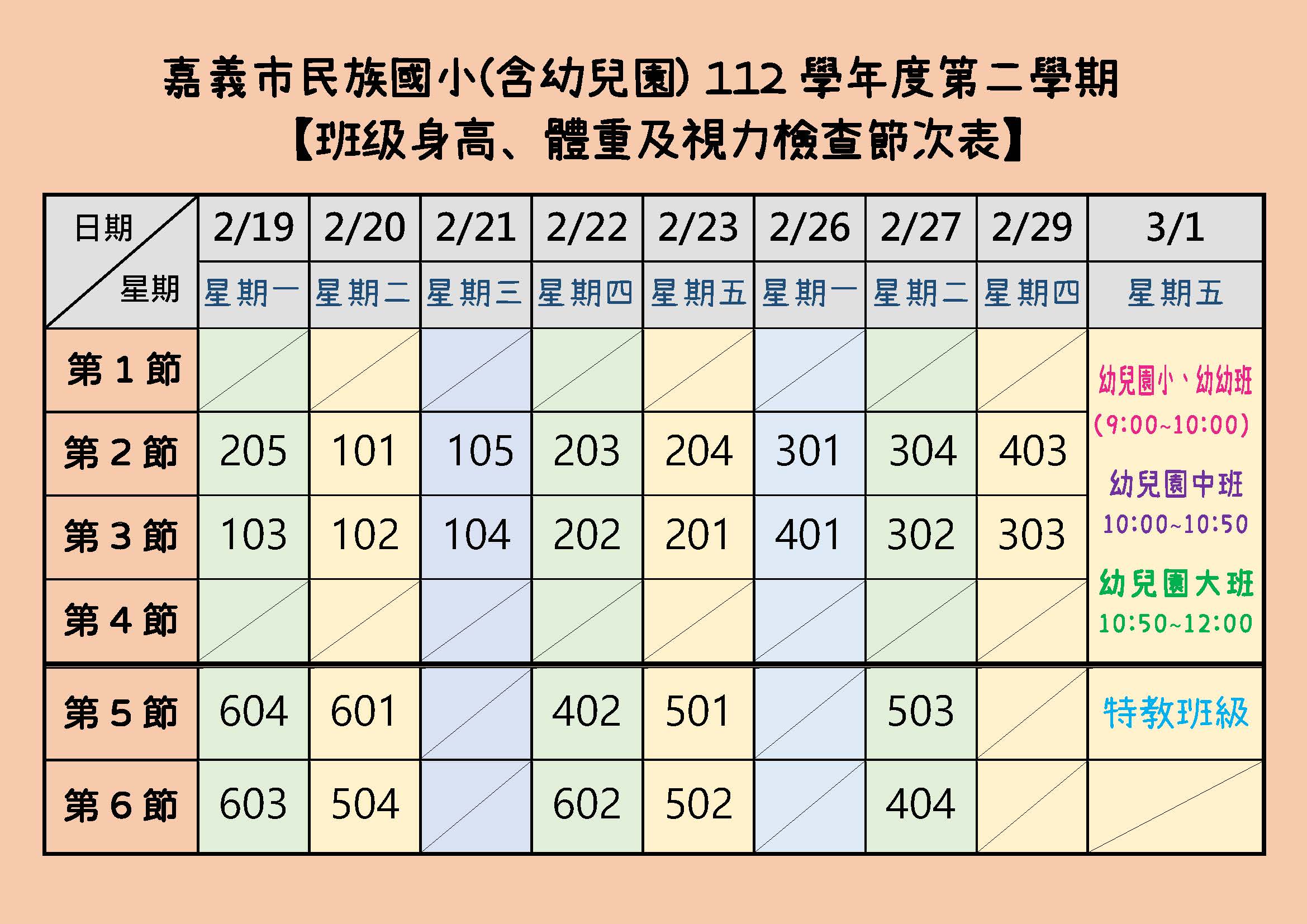 (二)各班級檢查節課,請參考排定時間表。