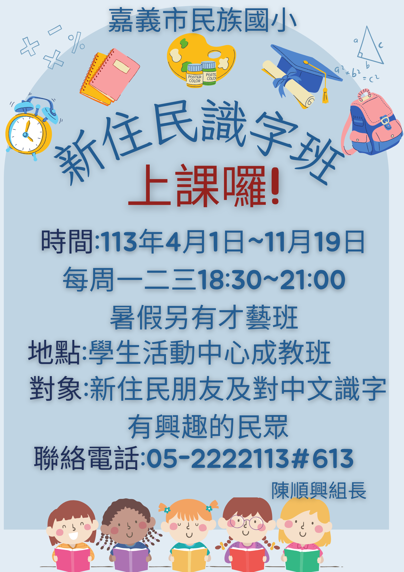 嘉義市民族國小新住民識字班上課日期
