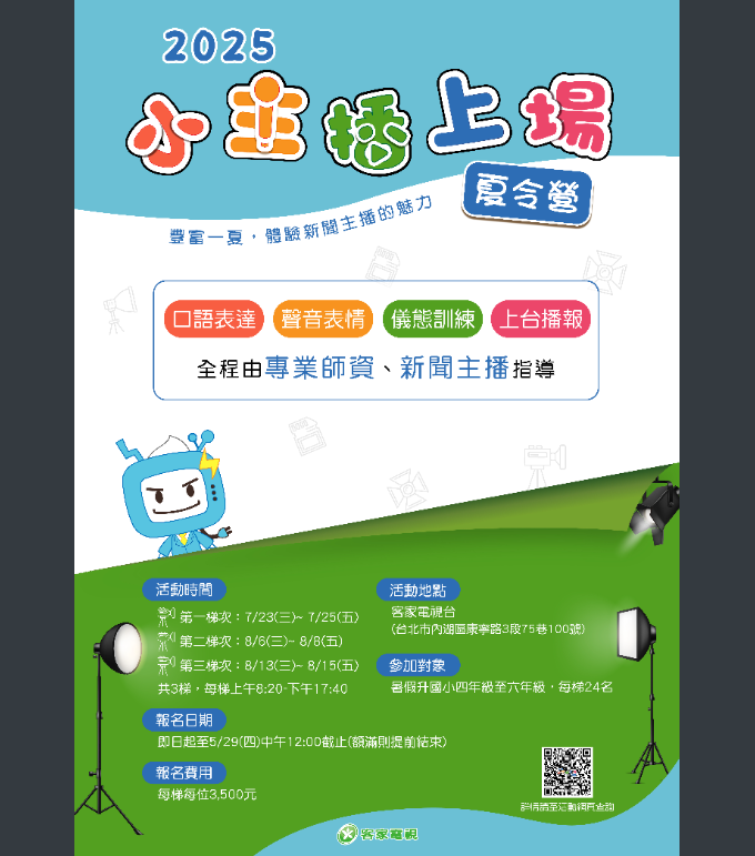 詳情請參見附件辦法,或至活動網頁 https://www. hakkatv.org.tw/post/1745559096834981 ,如有任何疑 問,歡迎聯繫行銷活動組李小姐,(02)2630-2081, event@hakkatv.org.tw。